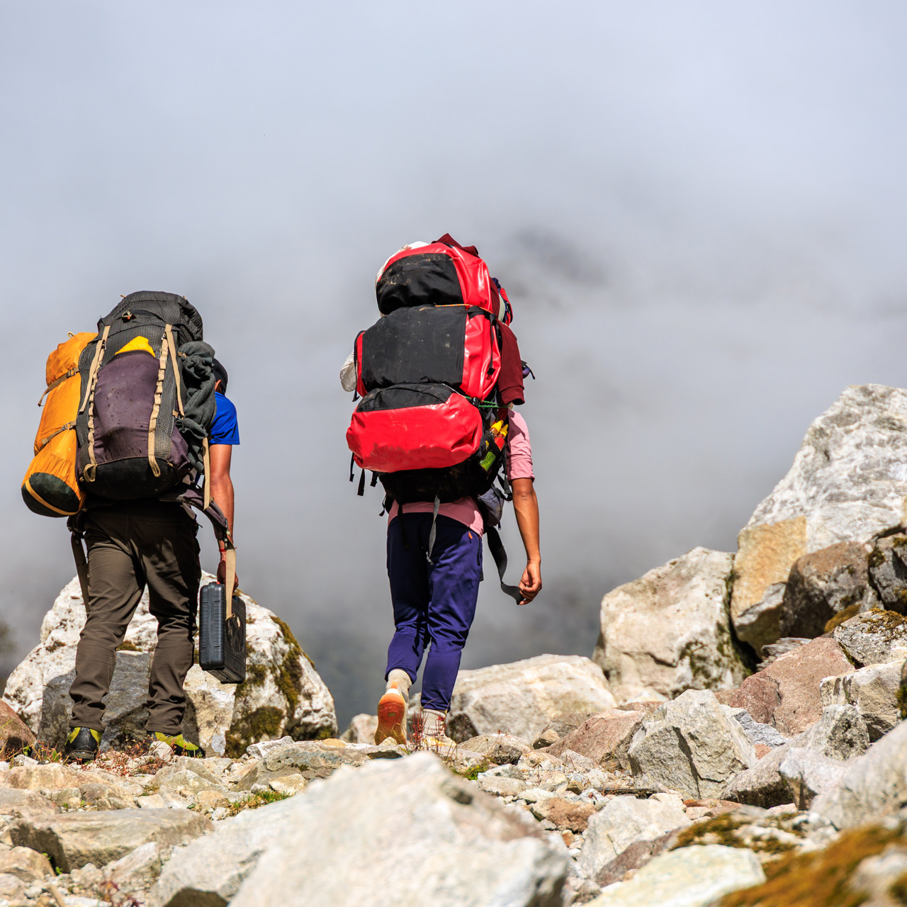 Tagesrucksack (10–15 kg werden von Maultieren getragen)