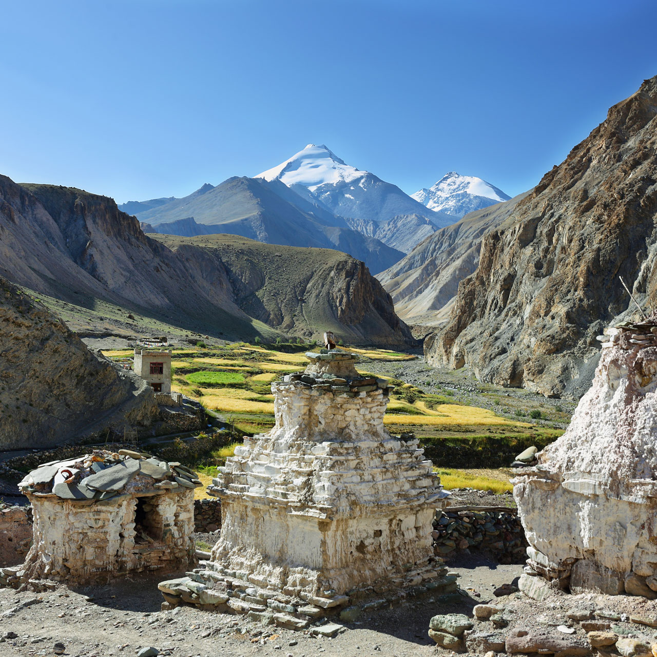 Der Aufstieg zum Kang Yatse II führt dich nicht nur auf über 6.000 Meter Höhe, sondern auch durch eine faszinierende Welt aus kargen Wüstenlandschaften, grünen Oasen im Markha Valley und jahrhundertealten Klöstern.