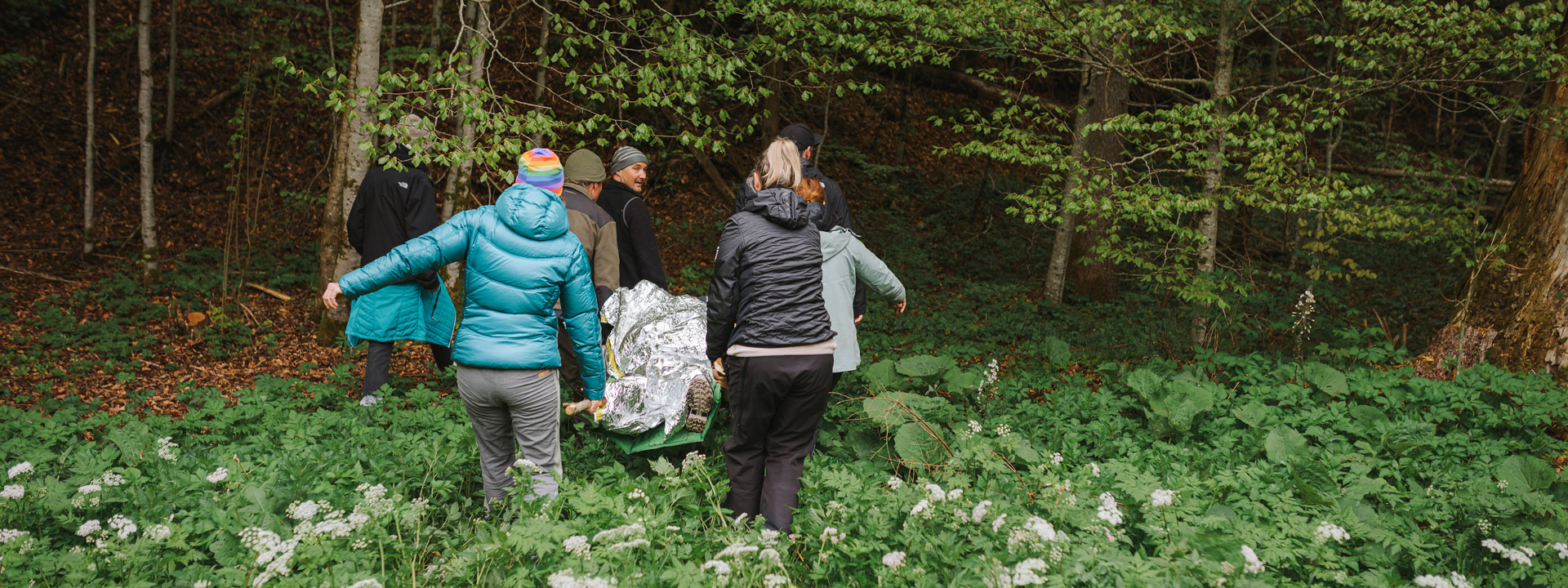 Erlebt realistische Szenarien: improvisierte Tragen bauen, Verletzte versorgen und im Gelände koordinieren – unter Zeitdruck und Stress.