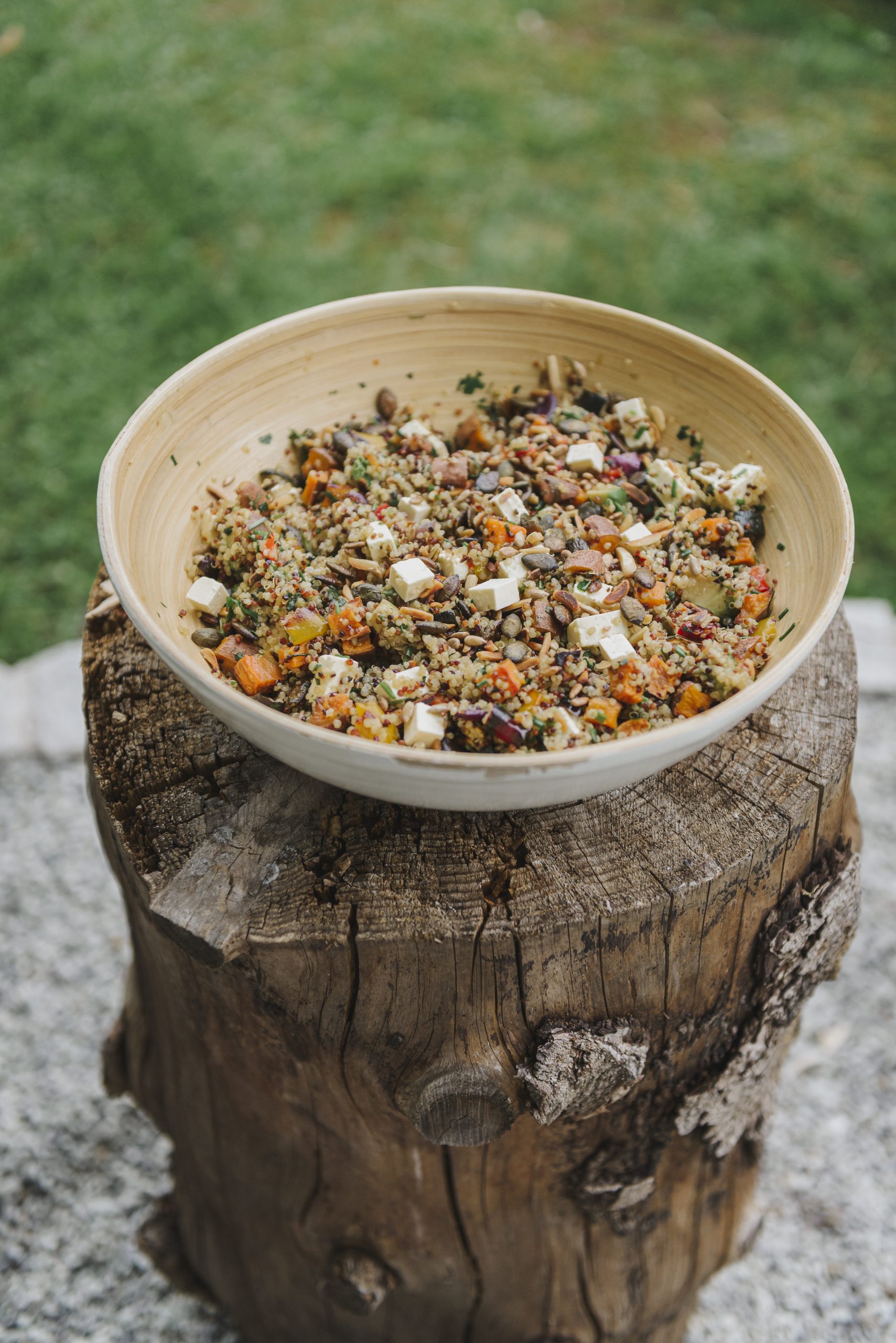Deluxe-Grill-Mittagessen / Abendessen: Eine Auswahl an gegrilltem Fleisch (Rind, Huhn, Fisch, Schwein) mit verschiedenen gesunden Salaten, z. B. Getreide-/Grün-/Nudel-/Kartoffel-/Obstsalaten. Für diese Option beschäftigen wir einen Koch, der sich um das Kochen für Sie kümmert.